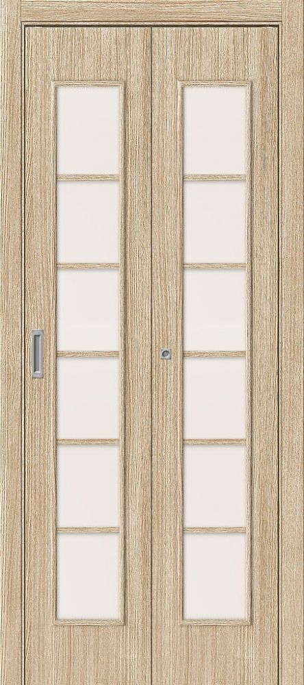 Описание Дверь-Книжка Складная Финиш Флекс Bravo 2С Л-21 БелДуб / Сатинато Межкомнатная 350x2000мм (Полотно 2шт+Коробка+Наличники 5шт+Ручка+Петли+Ролик) / Браво.