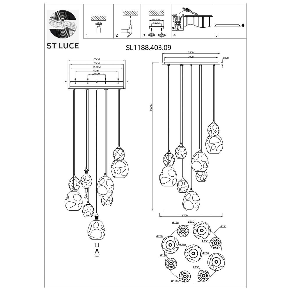 Описание Люстра Подвесная ST-Luce SL1188.403.09 Черный/Радужный E14/E27 5+4*40W / СТ Люче.