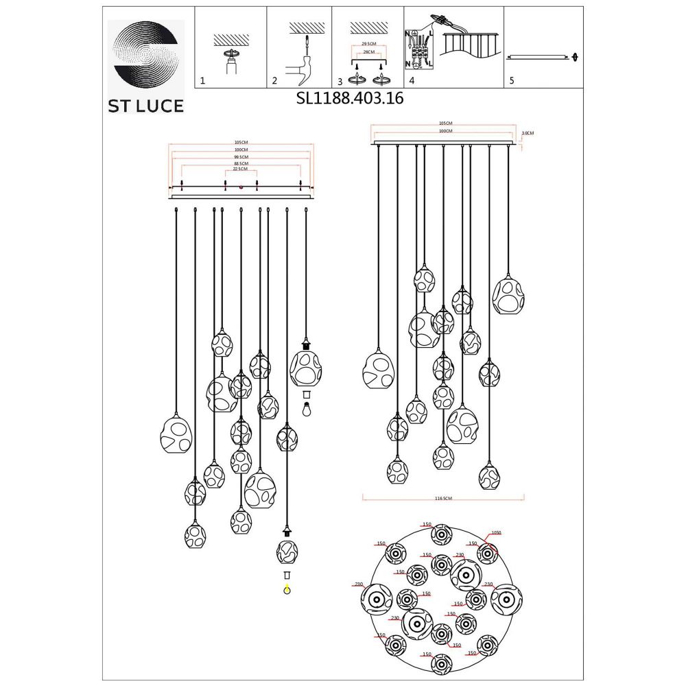 Описание Люстра Подвесная ST-Luce SL1188.403.16 Черный/Радужный E14/E27 12+4*40W / СТ Люче.