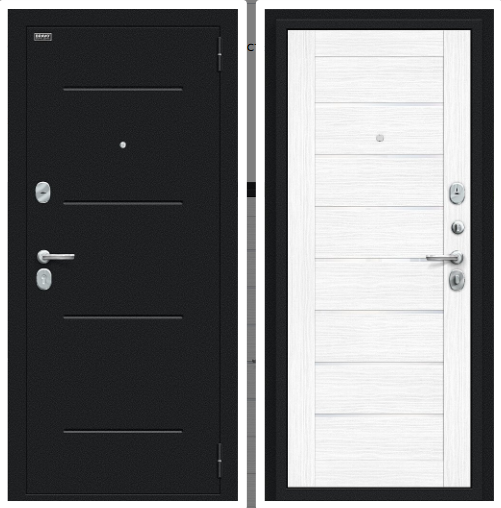 Описание Входная Дверь Bravo Техно Букле Черное/Snow Melinga 860x2050мм Правое Открывание / Браво.