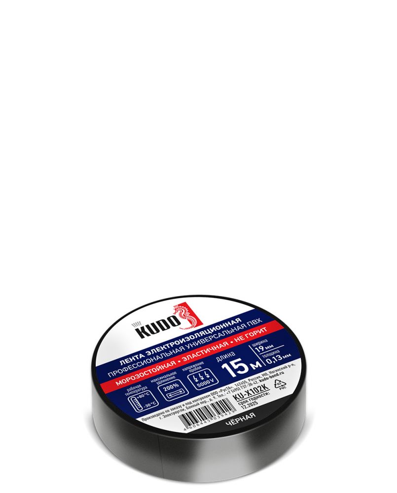 Описание Лента Электроизоляционная Kudo 15м Чёрная, Профессиональная, Универсальная / Кудо.