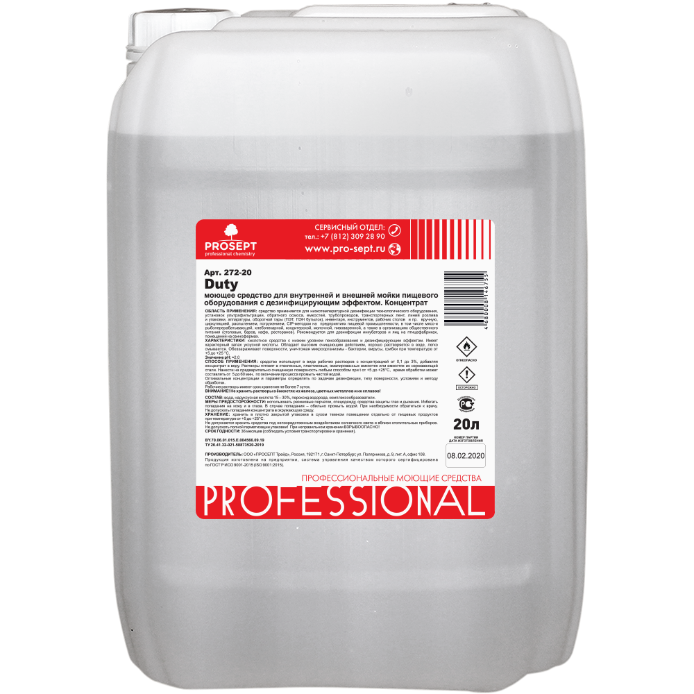 Описание Средство Моющее Prosept Duty 20л 272-20 / Просепт.