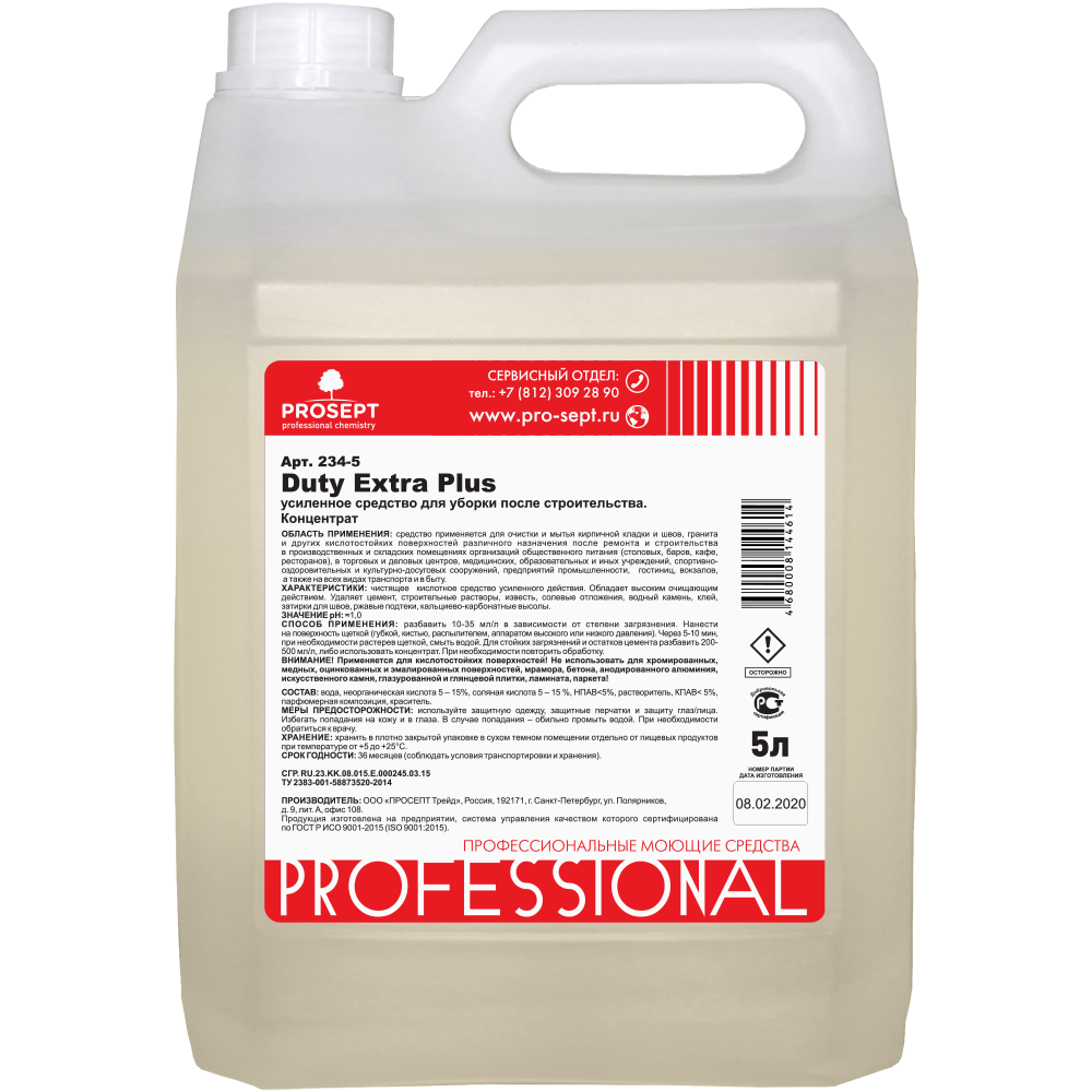 Описание Средство для Уборки После Строительства Усиленное Prosept Duty Extra Plus 5л 234-5 / Просепт.