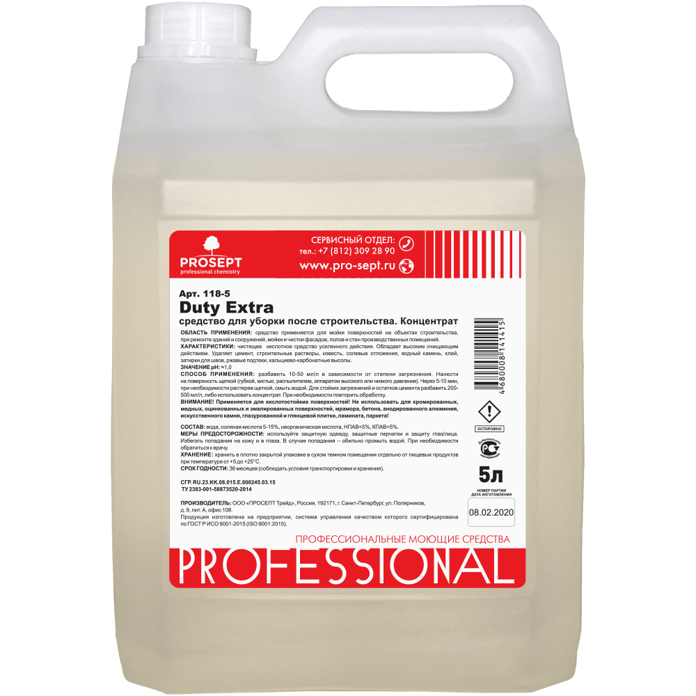 Описание Средство для Уборки После Строительства Prosept Duty Extra 5л 118-5 / Просепт.