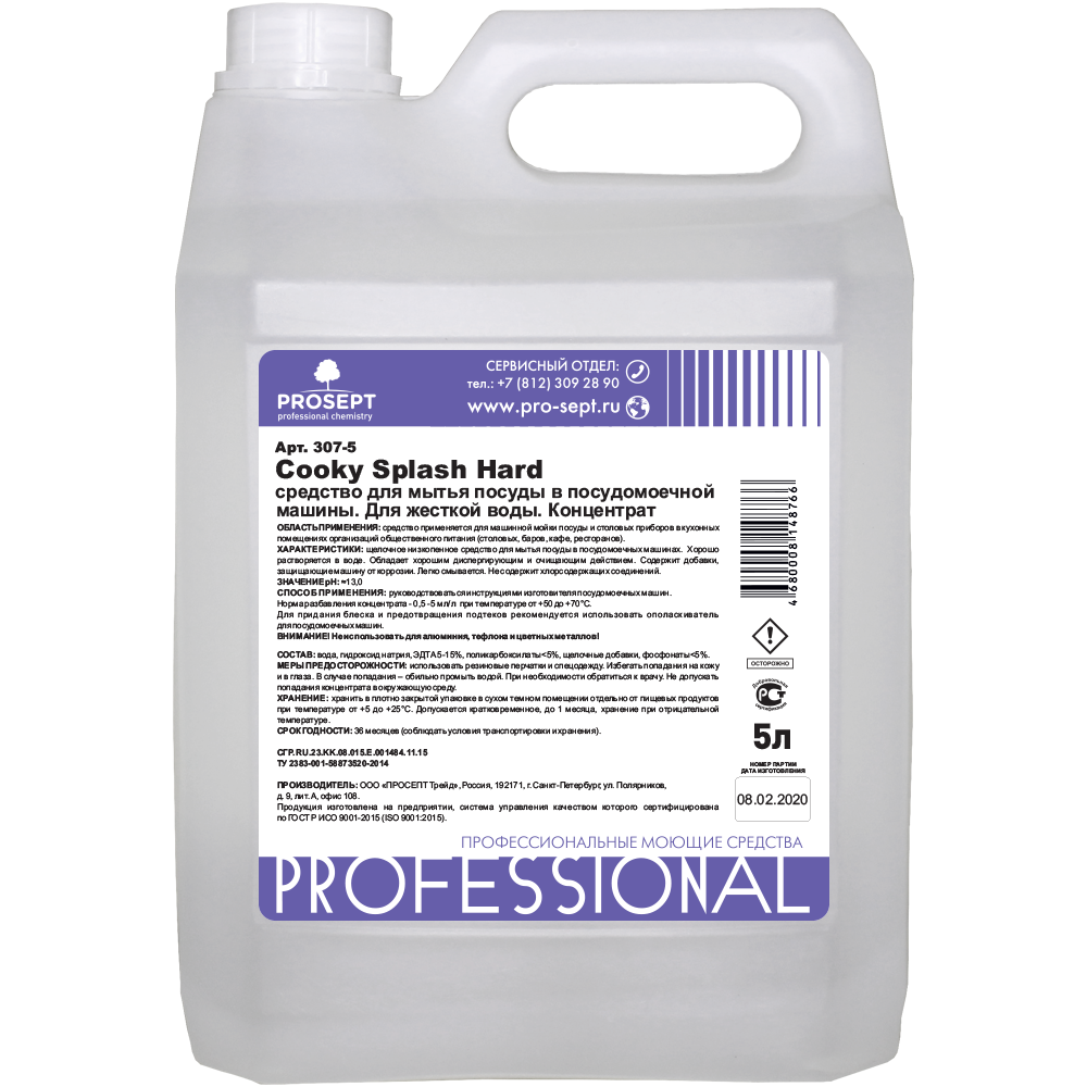 Описание Средство для Мытья Посуды в Посудомоечной Машине Prosept Splash Hard 5л 307-5 / Просепт.