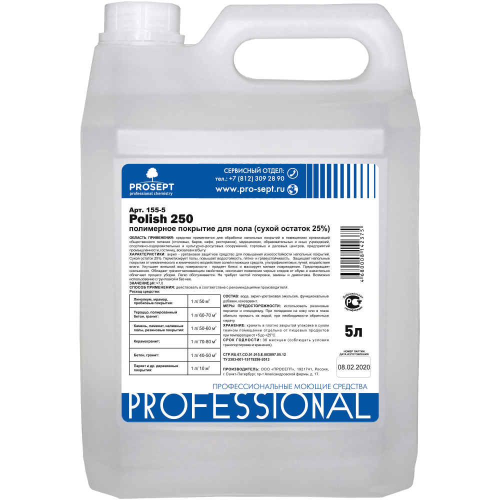 Описание Покрытие Полимерное для Пола Prosept Polish 250 5л 155-5 / Просепт.