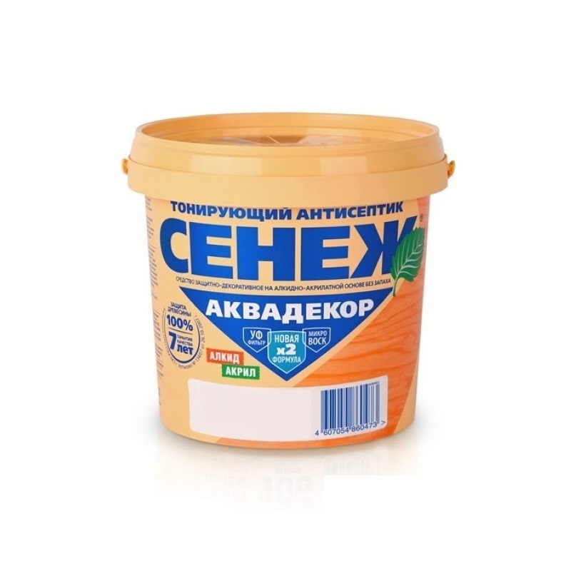 Антисептик СЕНЕЖ АКВАДЕКОР предназначен для долговременной защиты древесины от атмосферных осадков, плесневых, деревоокрашивающих и дереворазрушающих грибов, водорослей и насекомых-древоточцев, а также декоративной отделки под ценные породы. Сочетание в СЕНЕЖ АКВАДЕКОР алкидов, акрилатов и льняного масла улучшает проникновение в древесину, формирует эластичное дышащее защитное покрытие с мягким шелковистым блеском.