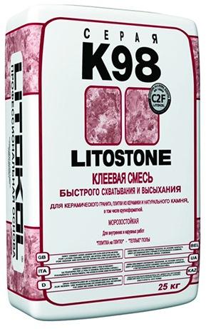 Описание Клеевая Смесь Быстротвердеющая Litokol LIitostone K98 25кг Цементная.*LITOSTONE K98 – цементный клей (С) с улучшенными техническими характеристиками (2), быстрого схватывания (F), относится к классу C2F согласно классификации Европей- ских Норм EN 12004.