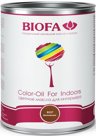 Цветное масло для интерьера (BIOFA Color-Oil For Indoors) - продукт состоящий из высококачественных природных компонентов. Используется для придания цветового оттенка поверхности древесины и в качестве износостойкого покрытия для мебели, стен, потолков, лестниц и всех видов деревянных напольных покрытий, пробки.