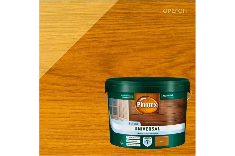 Описание Пропитка Универсальная Pinotex Universal 2 в 1 2.5л Орегон Полуматовая на Водной Основе для Защиты Древесины до 7 Лет / Пинотекс Универсал.Универсальная пропитка на водной основе для защиты древесины на срок до 7 лет*