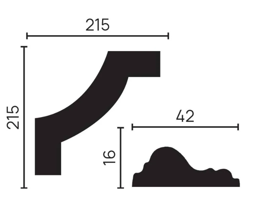 Описание Декоративный Уголок 2шт Decor-Dizayn C1-DD301 Белая Лепнина Д215хВ42хТ16 / Декор Дизайн.Длина:215*215 мм