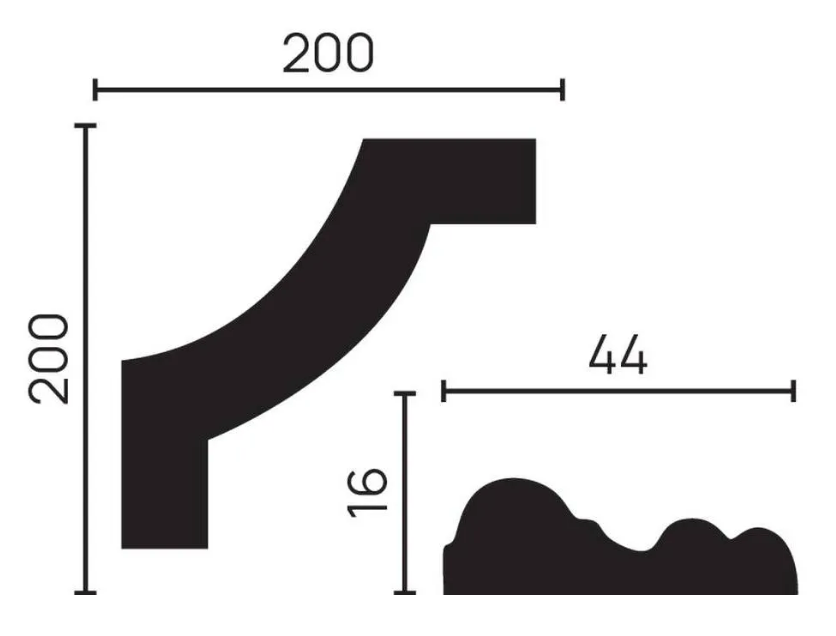Описание Декоративный Уголок 4шт Decor-Dizayn C1-DD400 Белая Лепнина Д200хВ44хТ16 / Декор Дизайн.Длина:200*200 мм