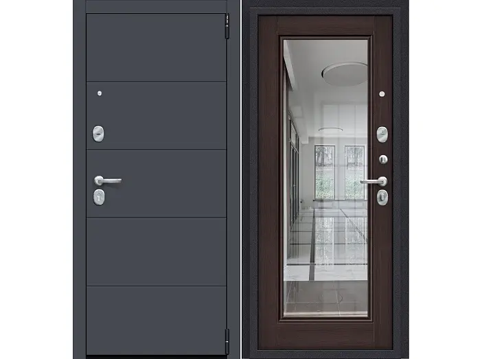 Описание Дверь Входная с Зеркалом с Ночной Задвижкой el’PORTA (Portika) Porta R-3 4/П61 Graphite Pro/Wenge Veralinga с Зеркалом 2 Замка с Ночной Задвижкой 0318-0201 / Портика