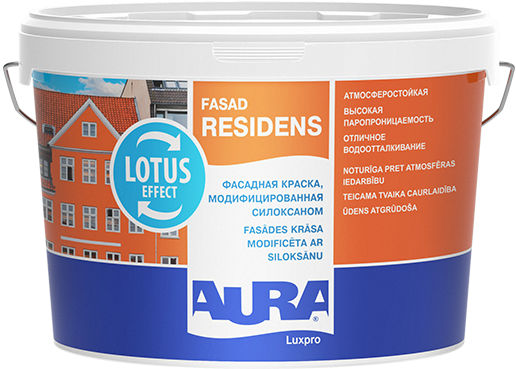 Описание Краска Фасадная Aura Fasad Residens 9л Модифицированная Силоксаном / Аура.Свойства