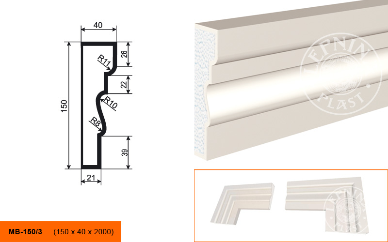 Описание Фасадный Молдинг Lepninaplast МВ-150/3 В150хШ40хД2000 мм / Лепнинапласт.