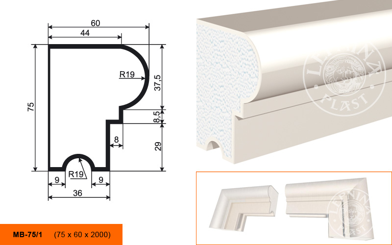 Описание Фасадный Молдинг Lepninaplast МВ-75/1 В75хШ60хД2000 мм / Лепнинапласт.
