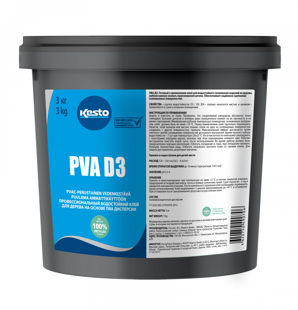 Описание Клей Водостойкий Kesto PVA D3 3кг Белый для Дерева на Основе ПВА Дисперсии / Кесто.
