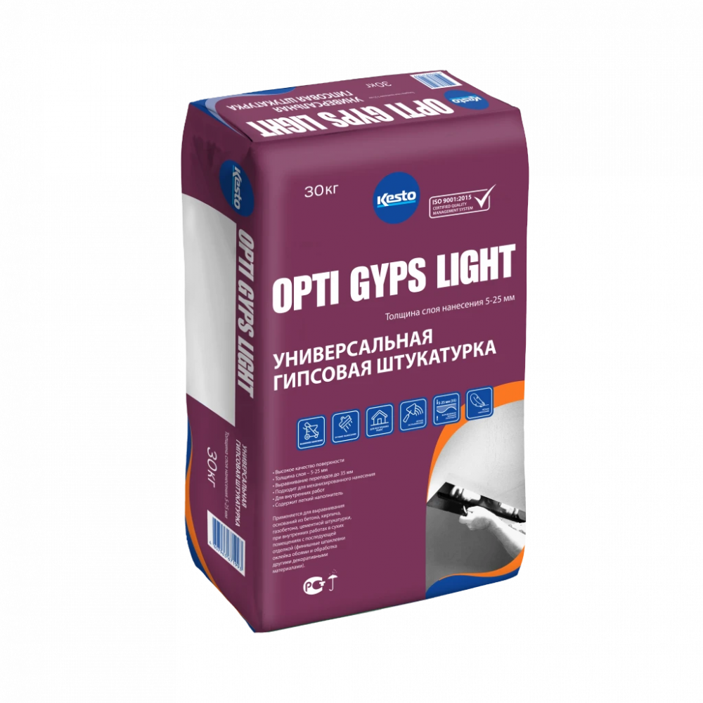 Описание Смесь Штукатурная Kesto Opti Gyps Light 30кг Светлая, Универсальная на Гипсовой Основе / Кесто.