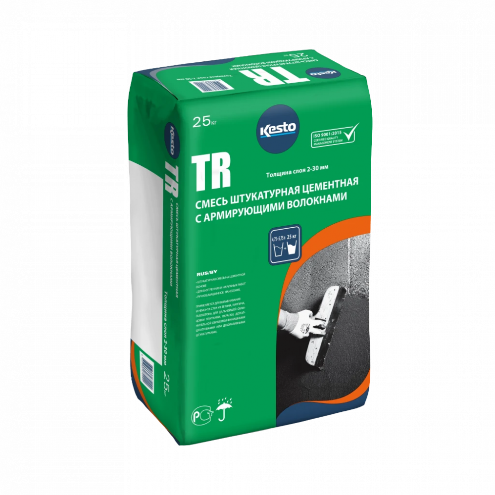 Описание Смесь Штукатурная Kesto TR 25кг Серая, Цементная c Армирующими Волокнами / Кесто.
