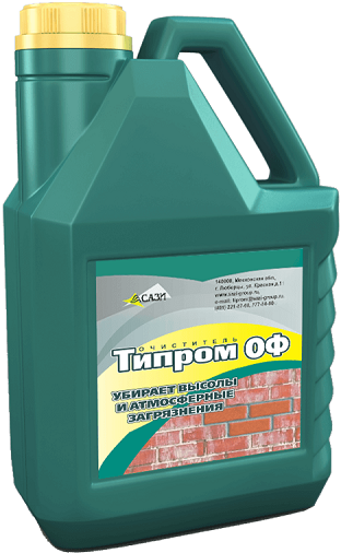 Описание Очиститель Фасадов Сази Типром ОФ 5л Убирает Высолы и Атмосферные Загрязнения.