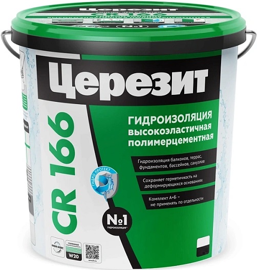 Описание Состав Гидроизоляционный 2-х комп. Ceresit CR 166 16кг Эластичный / Церезит СР 166.Двухкомпонентная полимерцементная масса для устройства эластичных водонепроницаемых покрытий