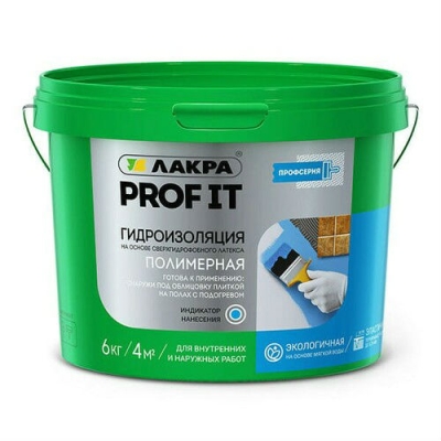 Отзывы о Гидроизоляция Латексная Лакра Prof It 6кг Голубая, Готовая к Применению, Эластичная.