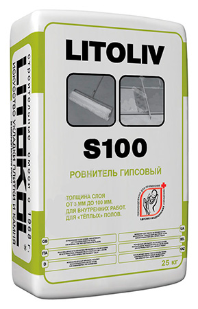 Описание Гипсовый Ровнитель для Пола Litoliv S100 25кг Litokol Толстослойный.LITOLIV S100 — сухая смесь на основе гипсового вяжущего, минеральных наполнителей и модифицирующих добавок. После затворения водой образует пластичный однородный раствор, легко выравнивающийся на горизонтальной поверхности. Предназначена для нанесения ручным и механизированным способом.