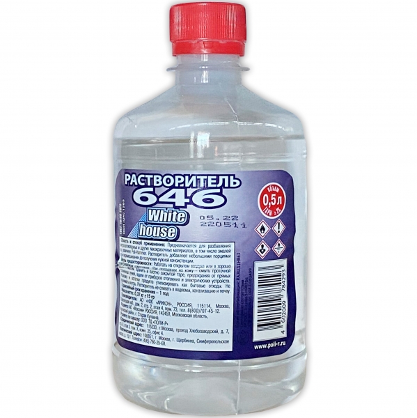Описание Растворитель 646 White House 1л Прозрачный.