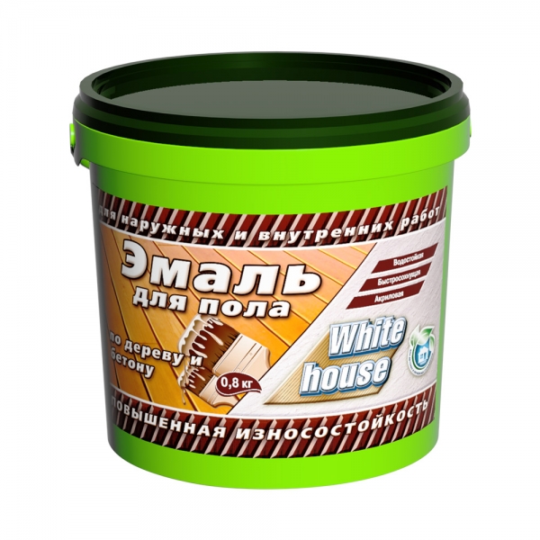 Описание Эмаль Акриловая для Пола White House 2.2кг Графитовый, Полуматовая Без Запаха / Вайт Хаус.ПРЕИМУЩЕСТВА Быстросохнущая