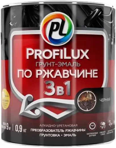 Описание Грунт-Эмаль по Ржавчине Гладкая ProfiLux 0.9кг 3 в 1 Черная, Глянцевая, Алкидно-Уретановая, Атмосферостойкая / Профилюкс Гладкая.Назначение и область примененияЭмаль по ржавчине предназначена для преобразования ржавчины, грунтования и окраски чистых и пораженных ржавчиной металлических поверхностей, а также для окраски крупногабаритных конструкций ( мосты, склады, цеха, гаражи, опоры линий электропередачи), изделий сложной конфигурации (трубы, кованая мебель, оконные решетки, декоративные оградки), сельскохозяйственной техники и деталей машин. Эмаль можно использовать в качестве грунтовки в многослойных системах покрытий.
