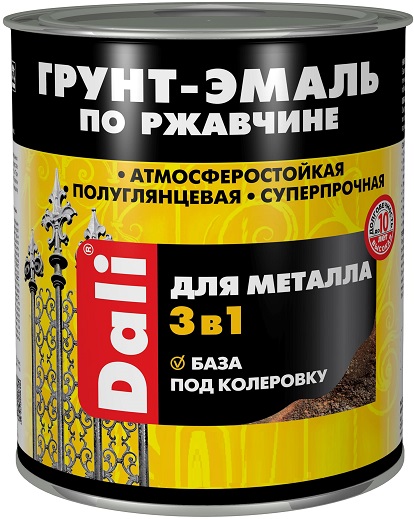 Описание Грунт-Эмаль по Ржавчине 3 в 1 Dali 0.7л База С Гладкая, Полуглянцевая для Металлических Поверхностей / Дали