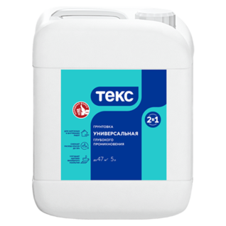 Описание Грунтовка Глубокого Проникновения 2-в-1 Текс Универсал 10л для Внутренних и Наружных Работ.Для грунтования поверхностей внутри и снаружи помещений, перед окраской водно-дисперсионными красками, шпатлеванием, облицовкой плиткой.