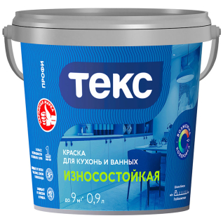 Описание Краска для Ванных и Кухонь Текс Профи 0.9л Глубокоматовая, Износостойкая.Для окраски стен и потолков внутри сухих помещений и помещений с повышенной влажностью (кухни, ванные и коридоры)