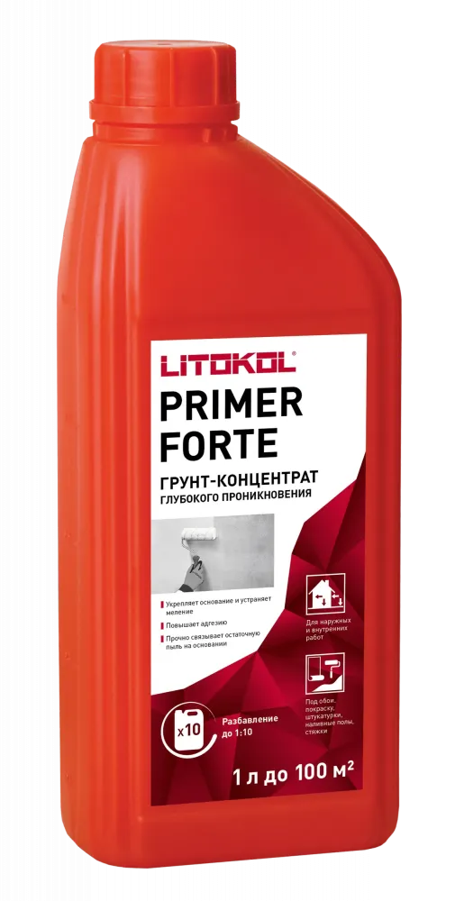 PRIMER FORTE — грунт-концентрат глубокого проникновения для подготовки минеральных оснований перед применением клеевых смесей, ровнителей, штукатурок, шпатлевок и красок.