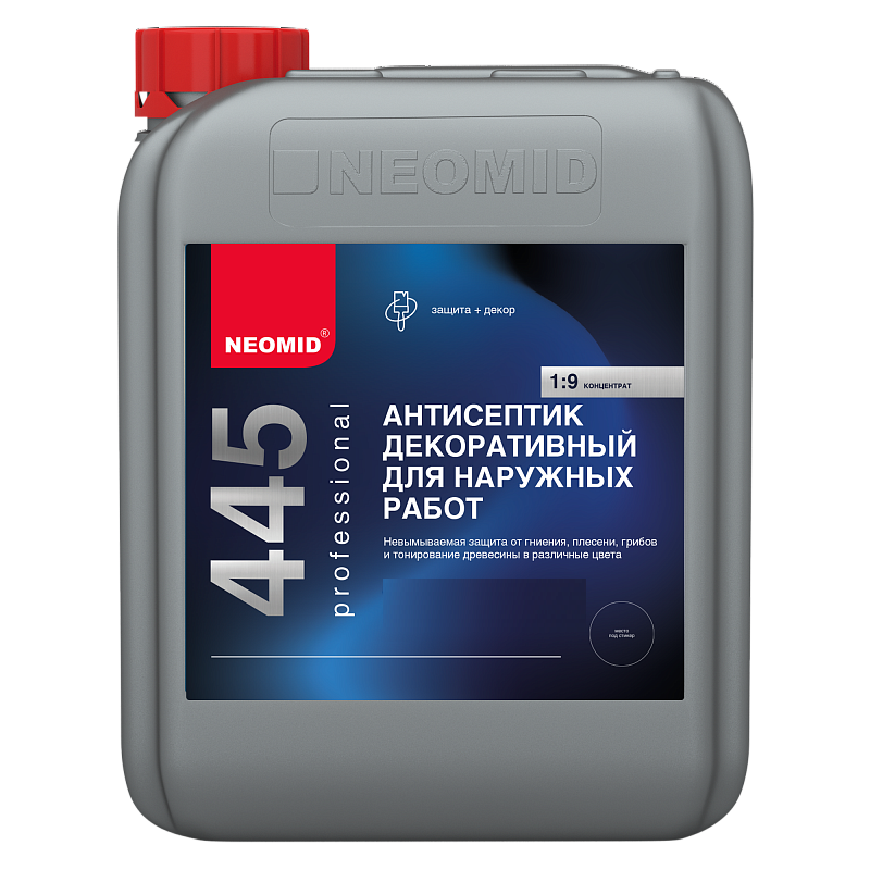 Описание Антисептик Декоративный для Наружных Работ Neomid 445 0,5кг Золотистая Мимоза Концентрат 1:9 / Неомид.