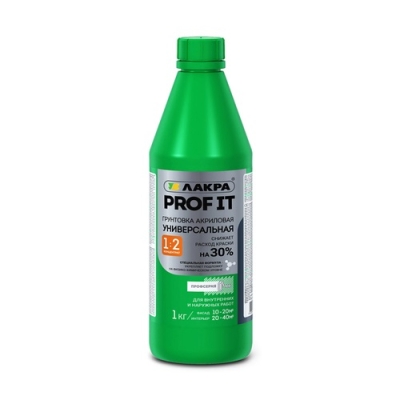Описание Грунтовка-Концентрат Лакра Prof It 1кг Акриловая, Универсальная для Внутренних и Наружных Работ.