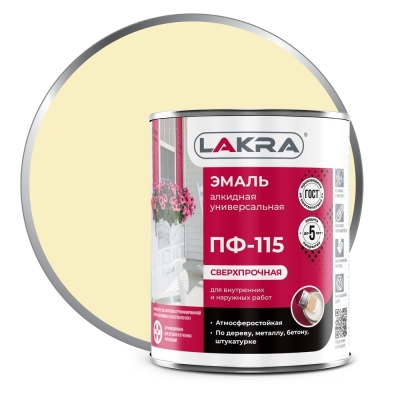 Описание Эмаль ПФ-115 Lakra 1кг Кремовая, Атмосферостойкая, Алкидная, Сверхпрочная / Лакра.