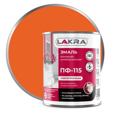 Описание Эмаль ПФ-115 Lakra 1кг Оранжевая, Атмосферостойкая, Алкидная, Сверхпрочная / Лакра.