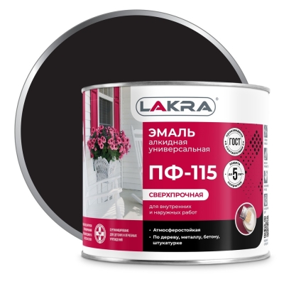 Эмаль ПФ-115 Lakra 1.9кг Черная, Атмосферостойкая, Алкидная, Сверхпрочная / Лакра.