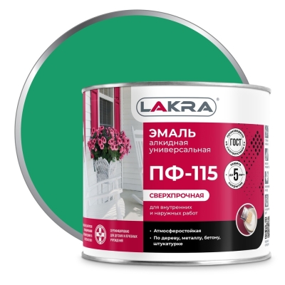 Описание Эмаль ПФ-115 Lakra 2кг Ярко-Зеленая, Атмосферостойкая, Алкидная, Сверхпрочная / Лакра.