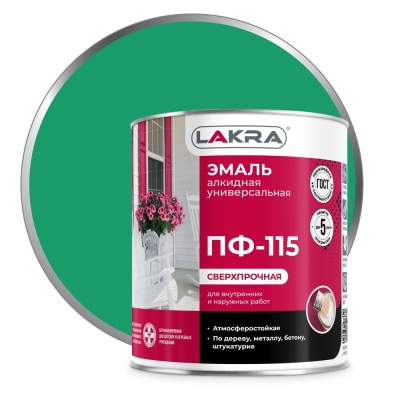 Описание Эмаль ПФ-115 Lakra 2.8кг Ярко-Зеленая, Атмосферостойкая, Алкидная, Сверхпрочная / Лакра.