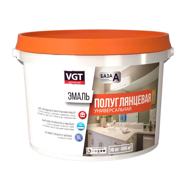 Описание Эмаль Универсальная VGT ВД-АК-1179 2.5кг Акриловая, Полуглянцевая для Наружных и Внутренних работ / ВГТ.