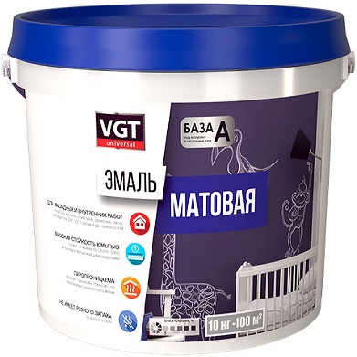 Описание Эмаль Универсальная Акриловая VGT ВД-АК-1179 15кг Коричневая RAL8011 Матовая, без Запаха для Внутренних и Наружных Работ / ВГТ Эмаль.Для наружных и внутренних работ по всем видам поверхностей, а таже для окраски обоев. Рекомендуется для использования в жилищном и гражданском строительстве, в том числе, для окраски помещений в детских и лечебно-профилактических учреждениях.