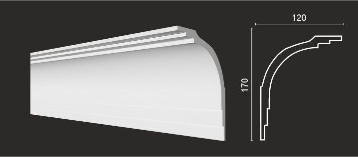 Описание Карниз Decor-Dizayn DD511 Белая Лепнина Д2000хВ170хТ125 / Декор Дизайн.Длина:2000 мм
