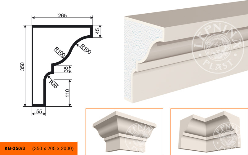 Описание Карниз Фасадный Lepninaplast КВ-350/3 В350хШ265хД2000 мм / Лепнинапласт.