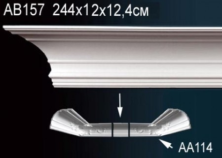 Описание Карниз Потолочный Perfect AB157 Д244xШ12.4xВ12 см /Перфект.Потолочный карниз из полиуретана.