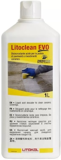Описание Очиститель Кислотный Litokol Litoclean EVO 1 л Жидкий от Остатков Цементного Клея или Цементных Затирок.Litokol Litoclean EVO 1 - чистящая жидкость на основе органической кислоты. Продукт эффективен при очистке облицованных поверхностей от загрязнений на цементной и известковой основе, высолов и белесых налетов. При работе с Litoclean EVO 1 отсутствуют токсичные и ядовитые пары, опасные для здоровья.
