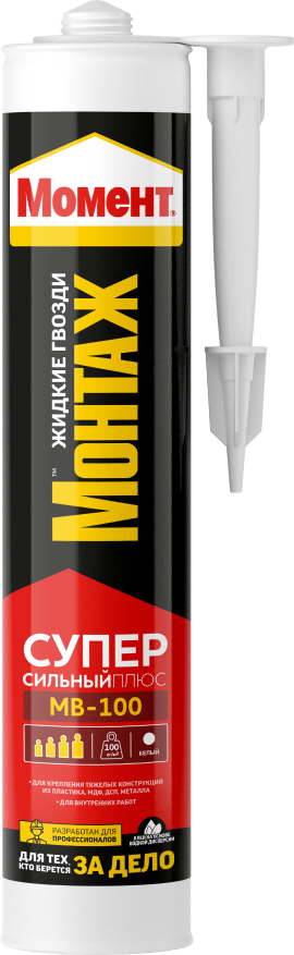 Момент Монтаж Суперсильный МВ-100 белый обладает высокой начальной силой склеивания (100 кг/м2) и отлично подходит для различных ремонтных работ.