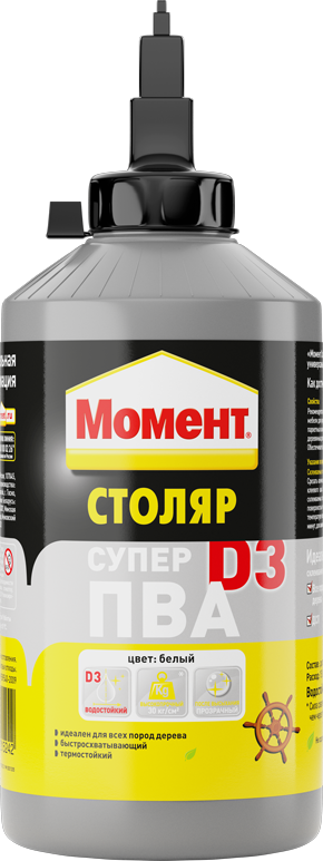 Описание Клей Момент Столяр Супер ПВА D3 0.75кг Водостойкий для Склеивания Дерева и Других Материалов.