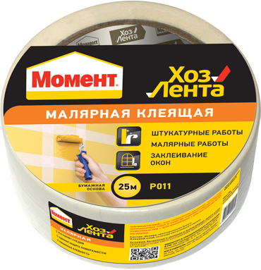 Малярная клеящая лента Хозлента Момент. Прекрасное средство для защиты поверхностей при проведении малярных и строительно-отделочных работ.